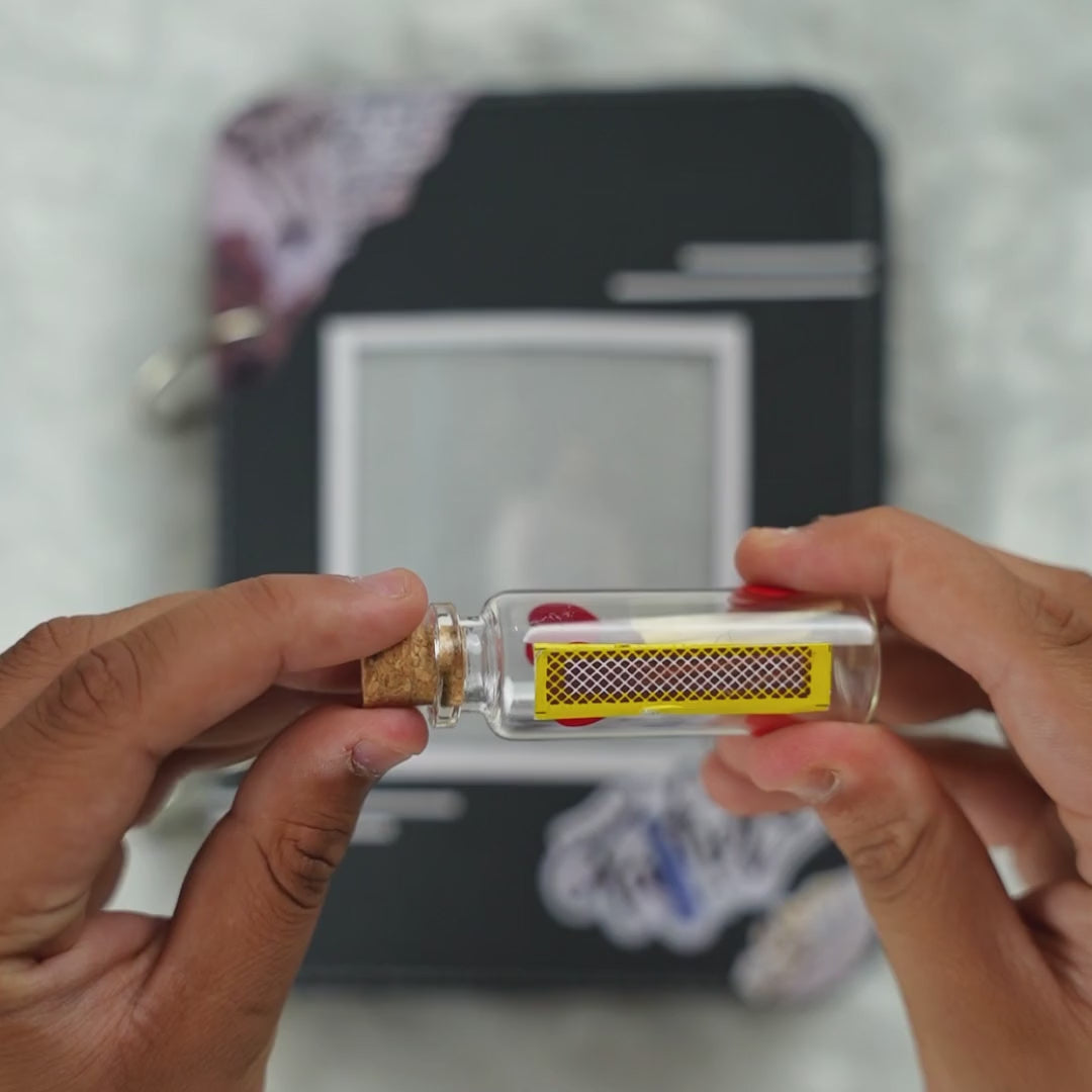 - Included: Small glass bottle with matchsticks for the reveal.