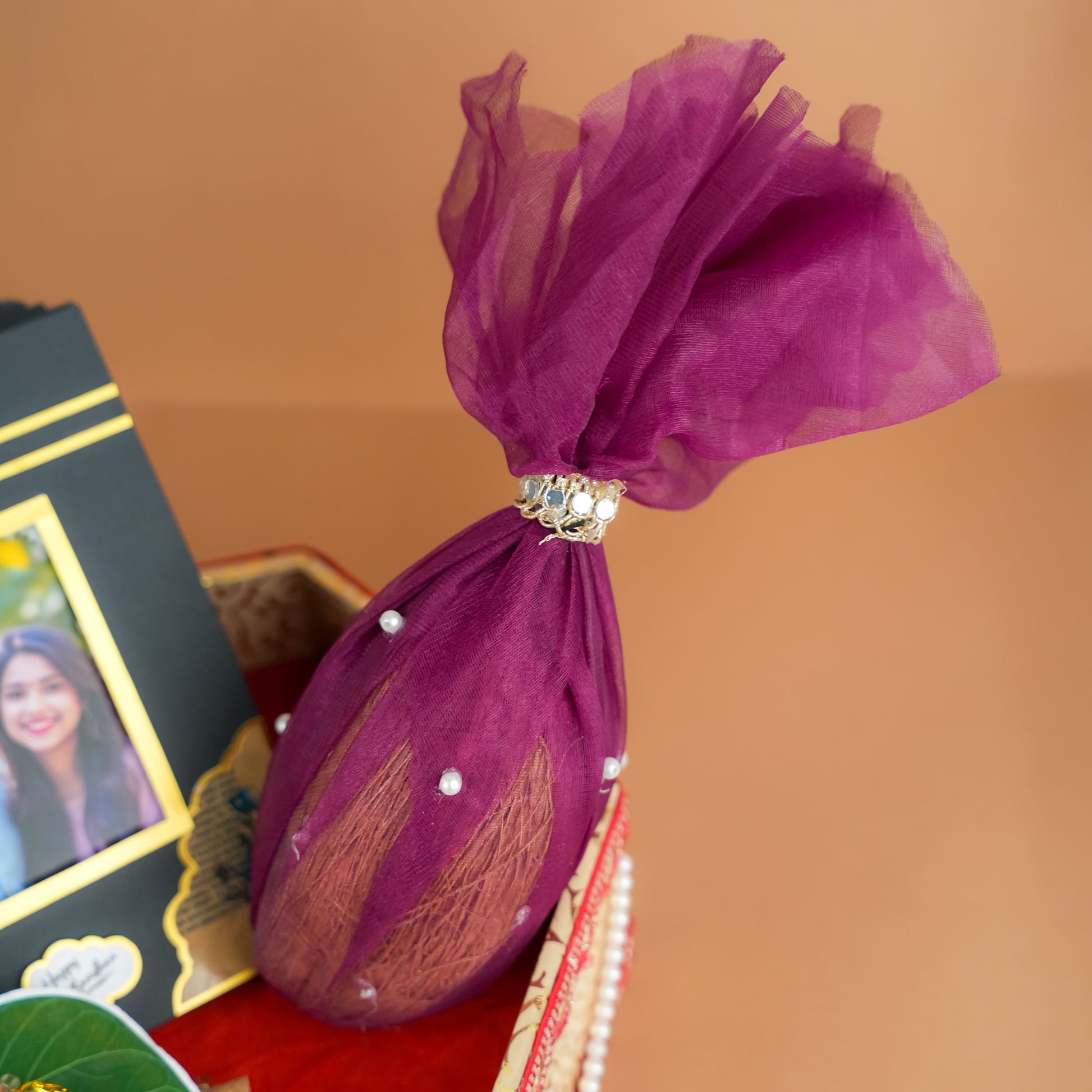 1 x Decorated Coconut (wrapped in net with pearls)