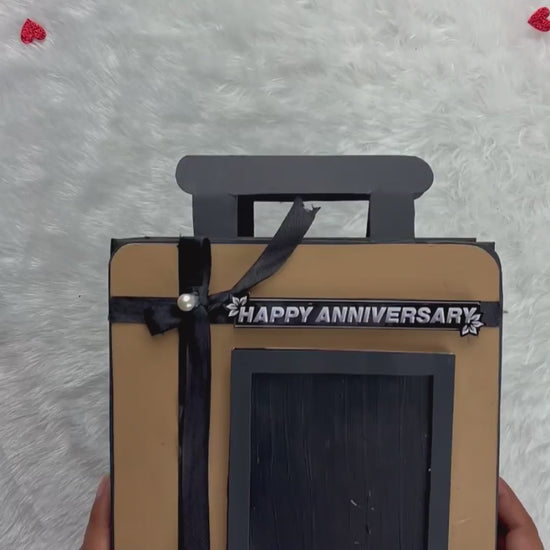 Give a surprise they'll never forget with this unique Suitcase-Style Photo Album! Measuring 10.5x7.5 inches, this interactive album holds up to 41 pictures across 10 beautifully designed pages. The elegant front features a scratch-off panel where the recipient reveals a hidden picture. Filled with fun "wow" elements inside, it's the perfect customizable keepsake for a birthday, anniversary, or any special occasion.